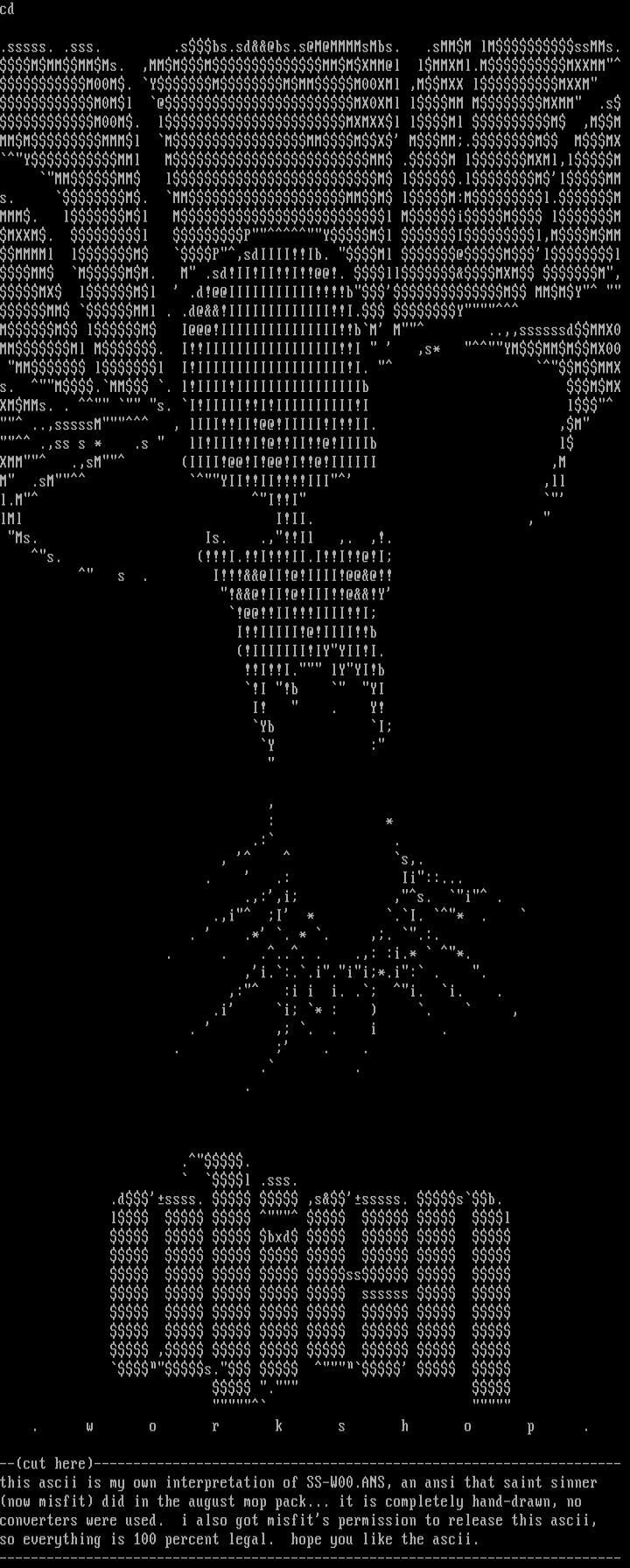 this ascii is my own interpretation of SS-W00.ANS, an ansi that saint sinner