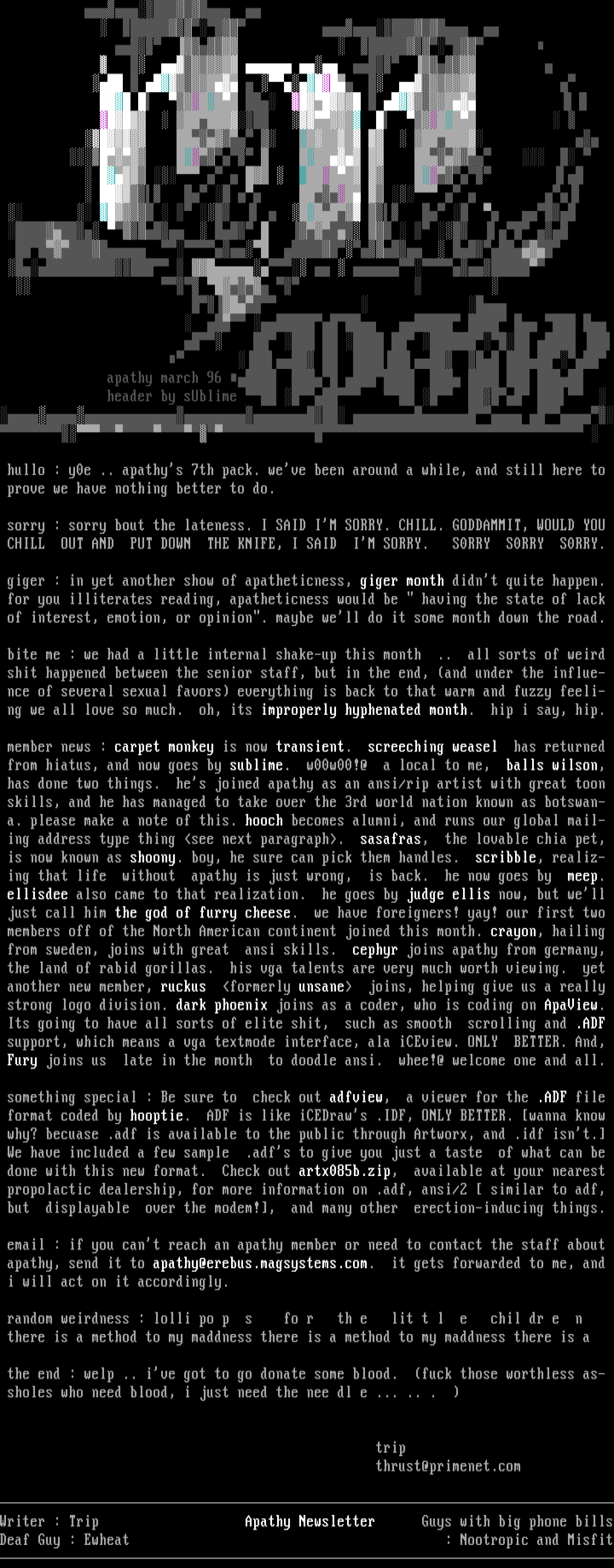 hullo : y0e .. apathys 7th pack. weve been around a while, and still