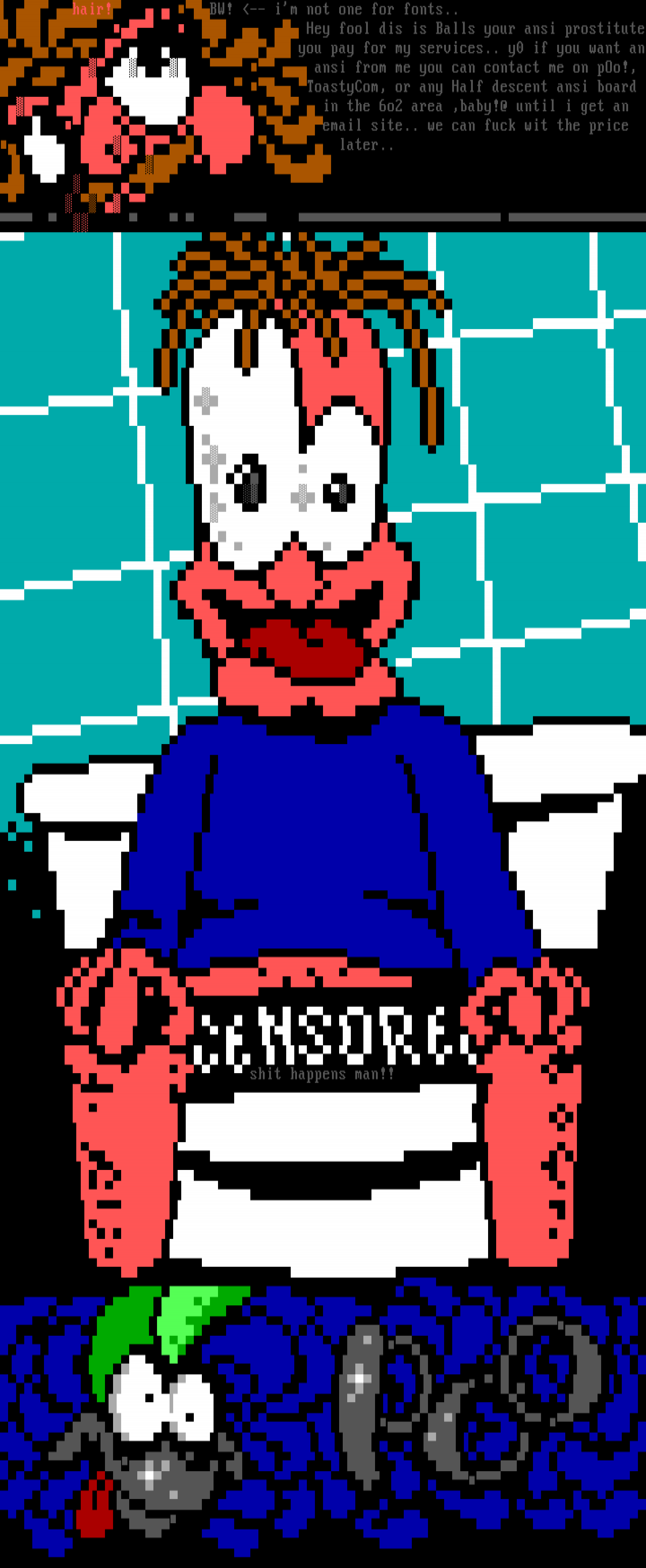 Hey fool dis is Balls your ansi prostitute you pay for my services.. y0 if you want an ansi from me you can contact me on pOo!,