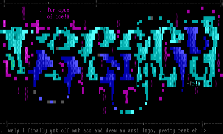 -----+--------------------------------------------+--------------------+------.. welp i finally got off muh ass and drew an ansi logo, pretty reet eh :