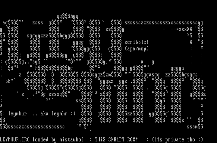 LEYMHUR.IRC coded by mistawho :: THiS SKR1PT R0X! :: its private tho :