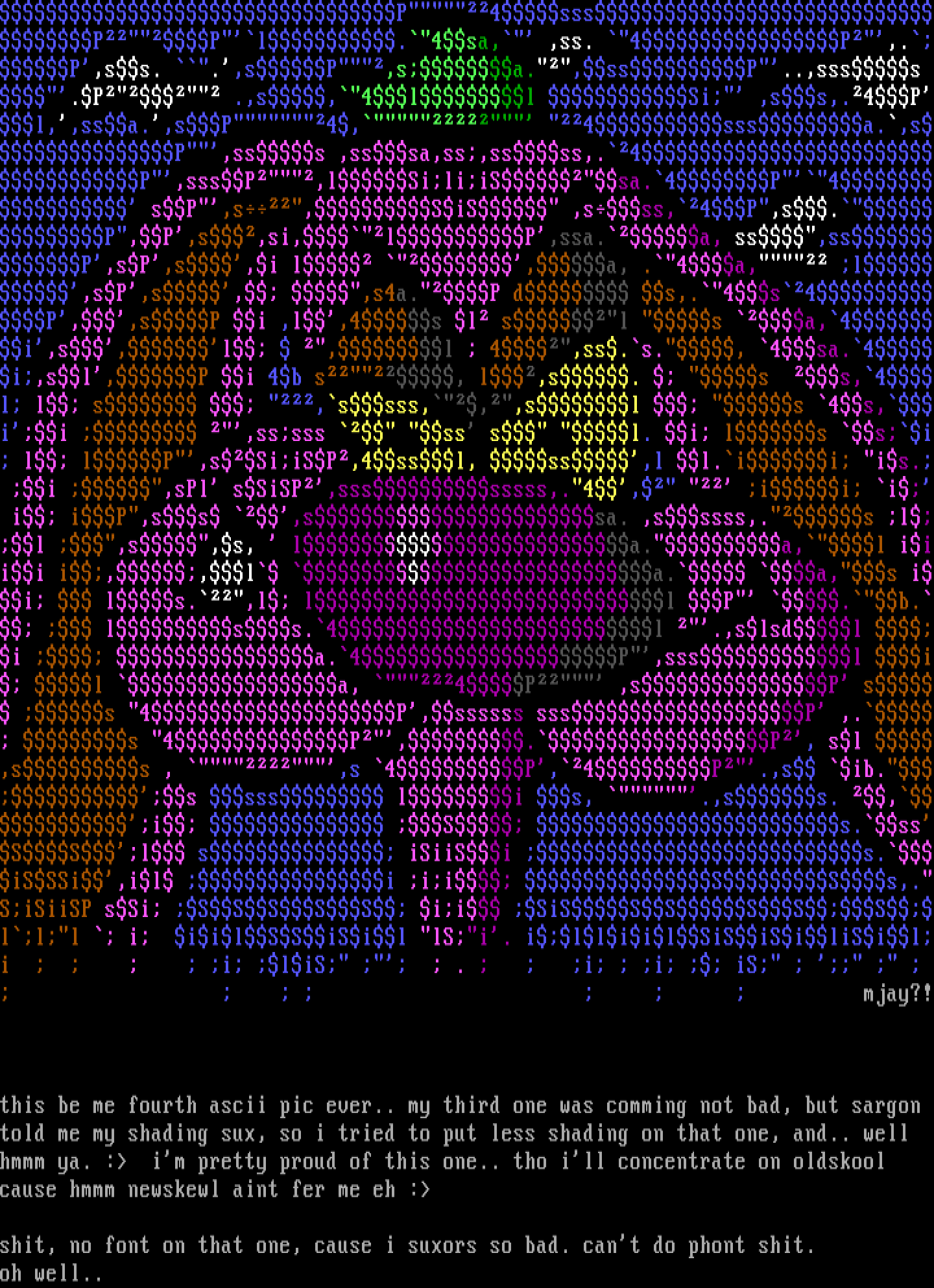 this be me fourth ascii pic ever.. my third one was comming not bad, but sargon