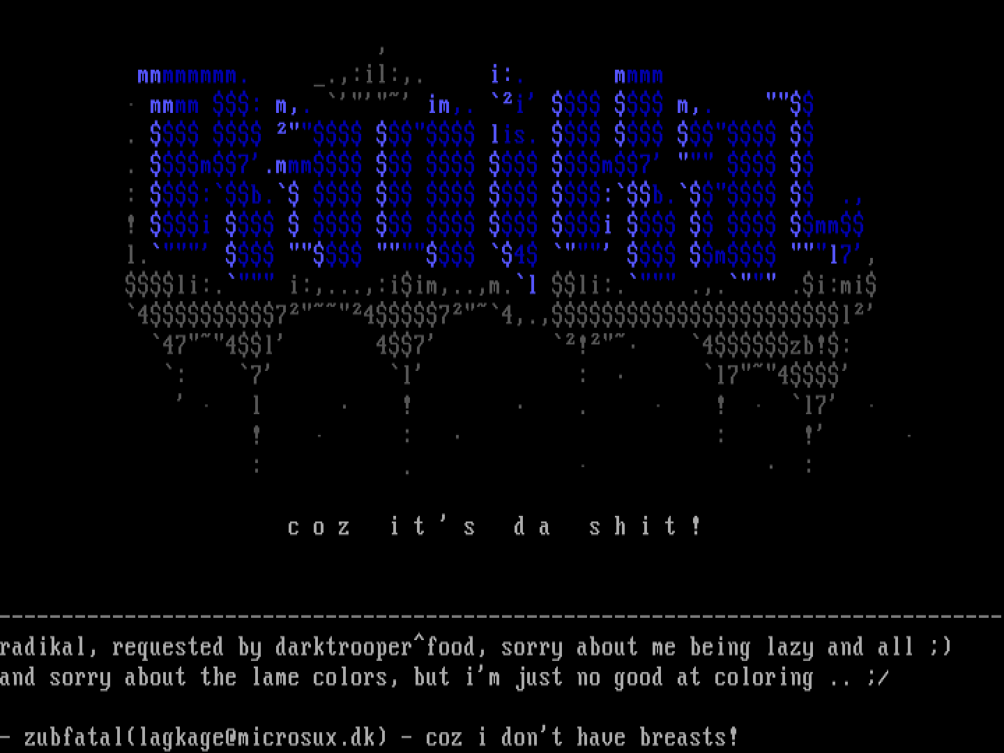 - zubfatallagkage@microsux.dk - coz i dont have breasts!