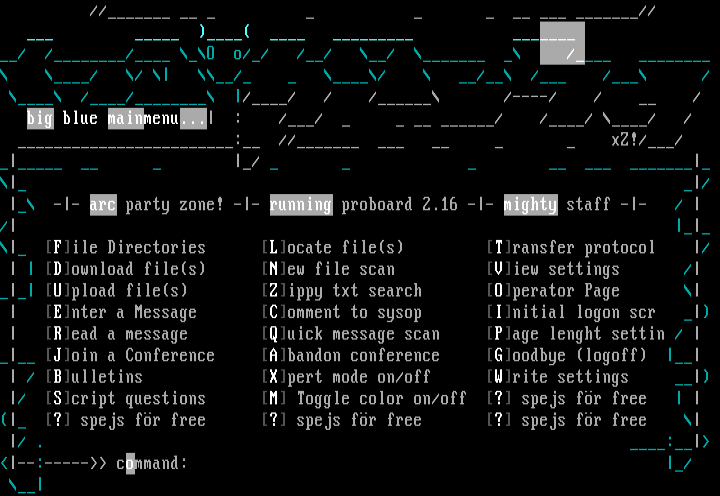 -- arc party zone! -- running proboard 2.16 -- mighty staff -- /