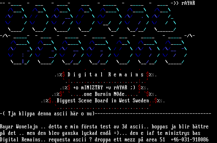 Digital Remains.. requesta ascii ? droppa ett mezz p area 51 +46-031-918086
