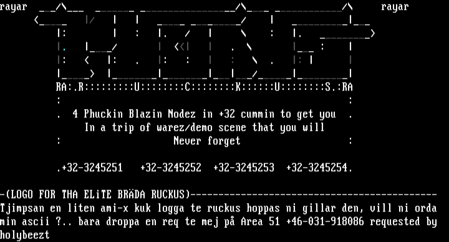 min ascii ?.. bara droppa en req te mej p Area 51 +46-031-918086 requested by