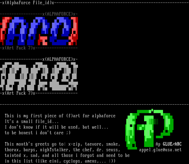 This months greets go to: x-zip, taevore, smoke, Ap GLUE/ARC