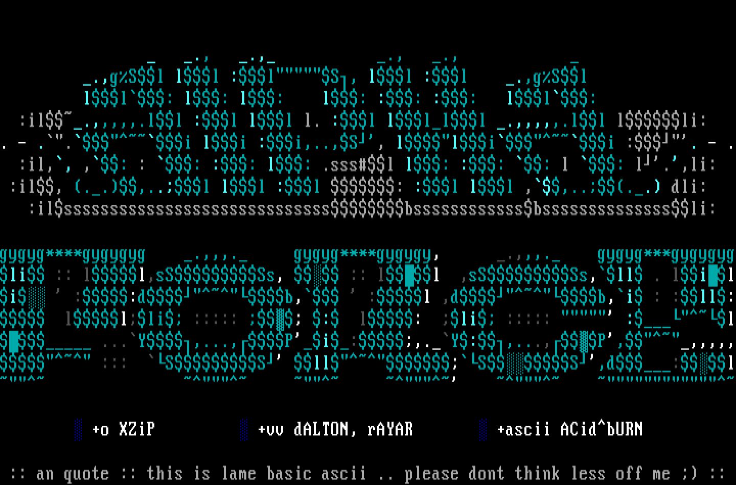 +o XZiP +vv dALTON, rAYAR +ascii ACidbURN