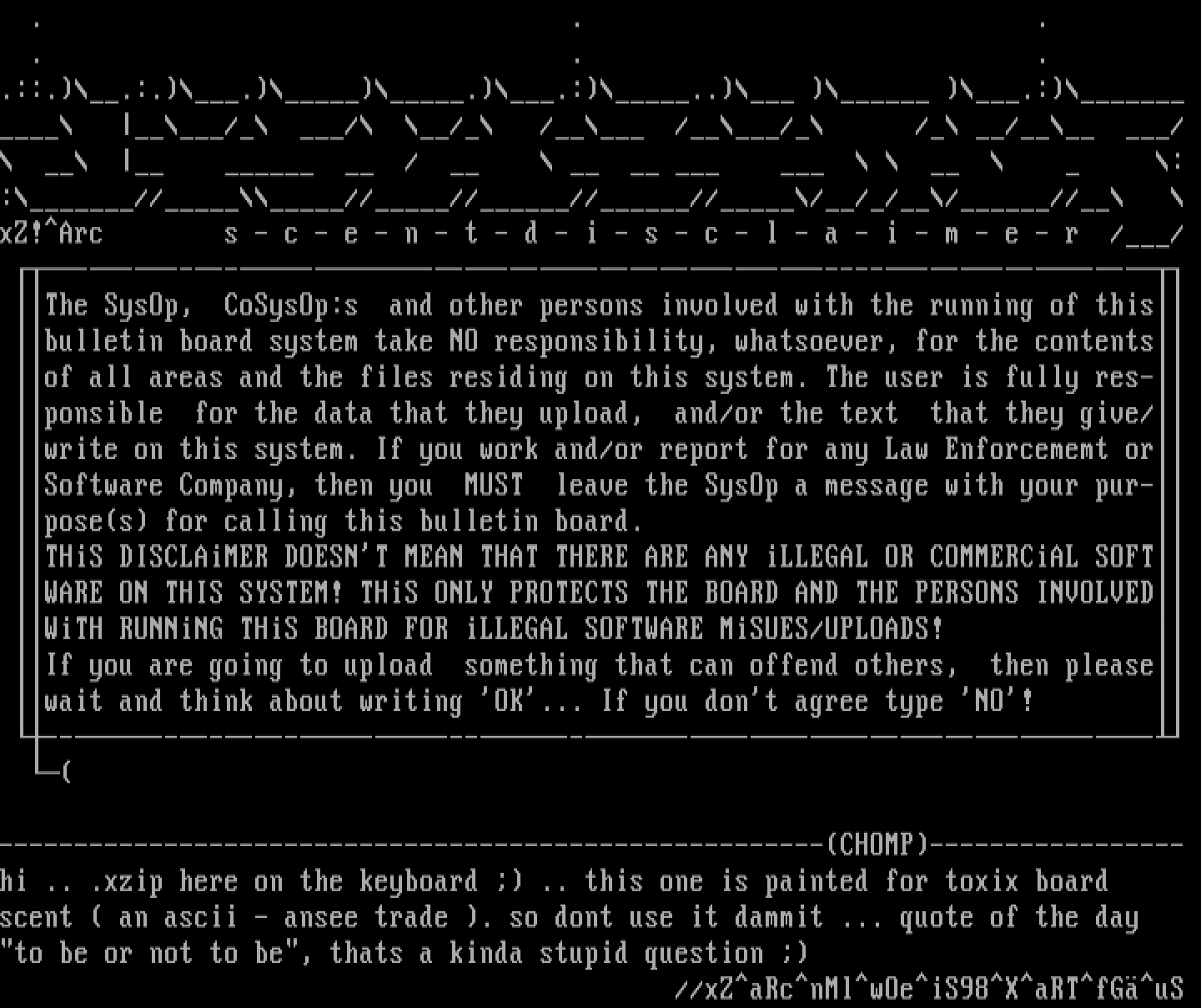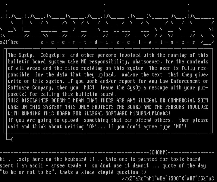 bulletin board system take NO responsibility, whatsoever, for the contents