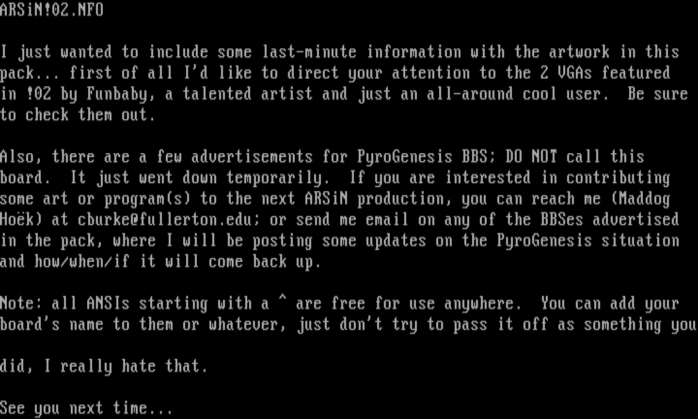 Also, there are a few advertisements for PyroGenesis BBS DO NOT call this