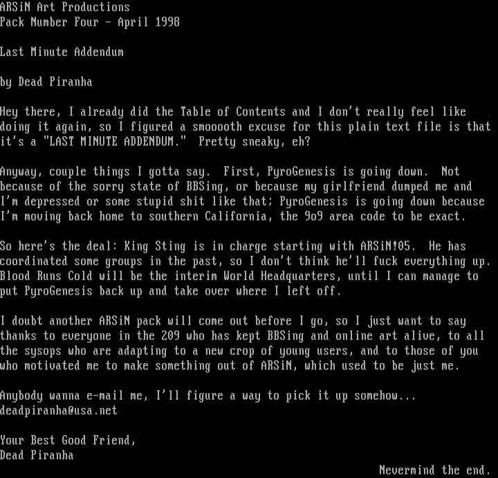 thanks to everyone in the 209 who has kept BBSing and online art alive, to all