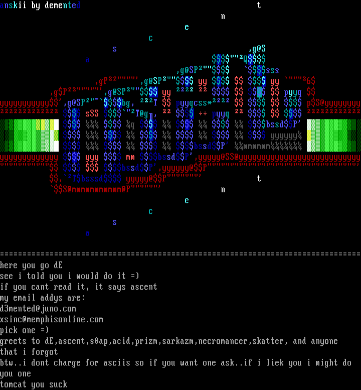 btw..i dont charge for asciis so if you want one ask..if i liek you i might do