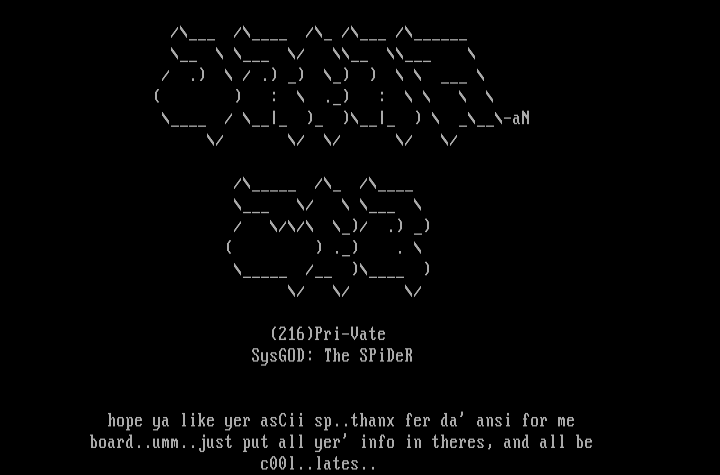 hope ya like yer asCii sp..thanx fer da ansi for me