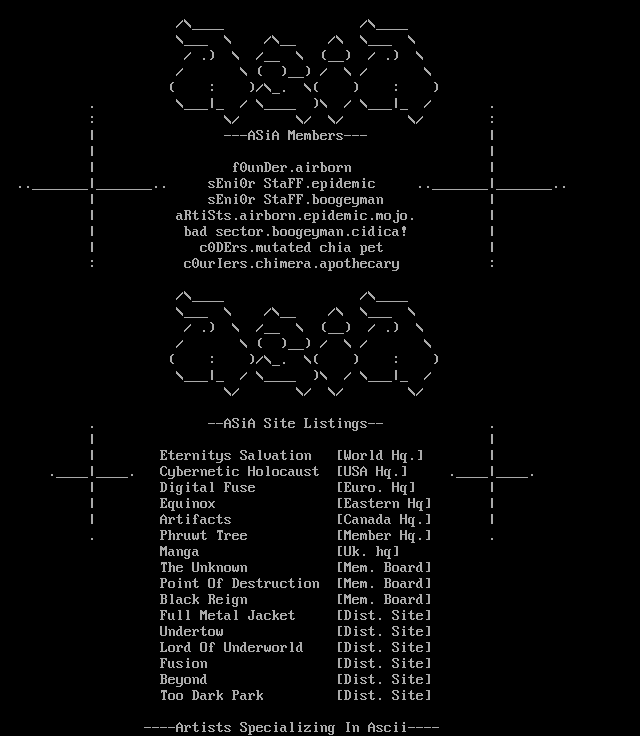 ----Artists Specializing In Ascii----