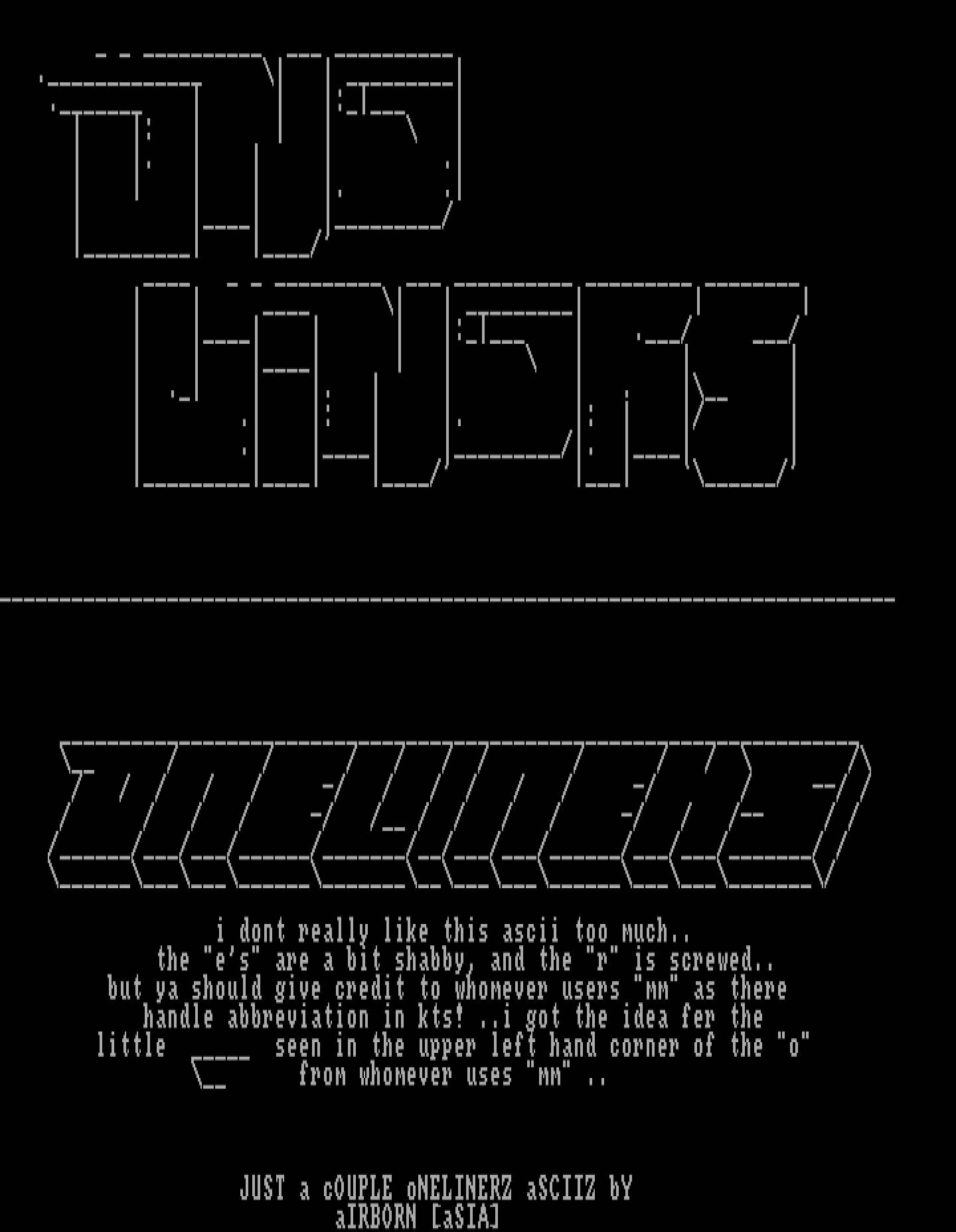 JUST a cOUPLE oNELINERZ aSCIIZ bY