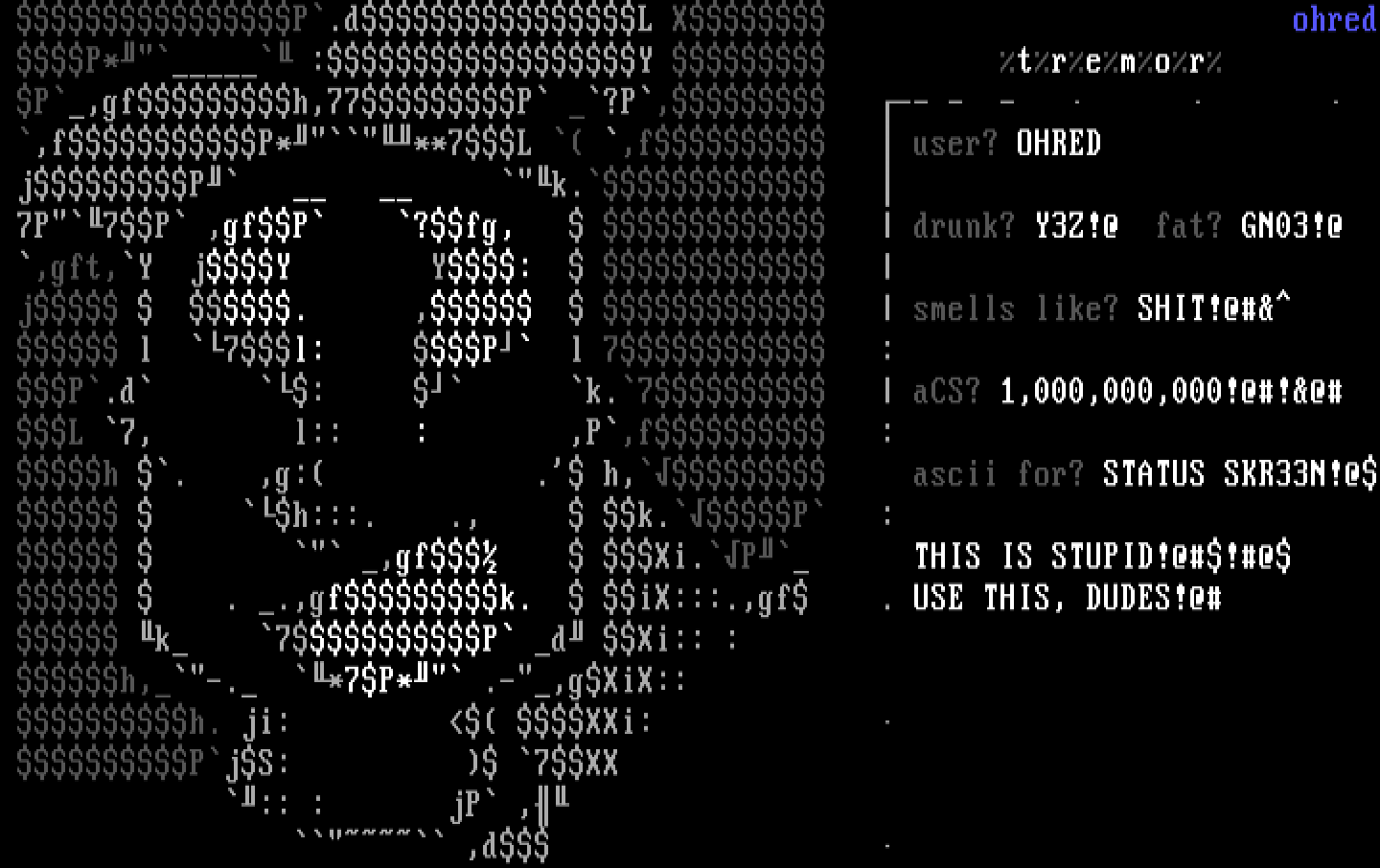 h . ,g: . h, ascii for? STATUS SKR33N!@ h:::. ., k.P :