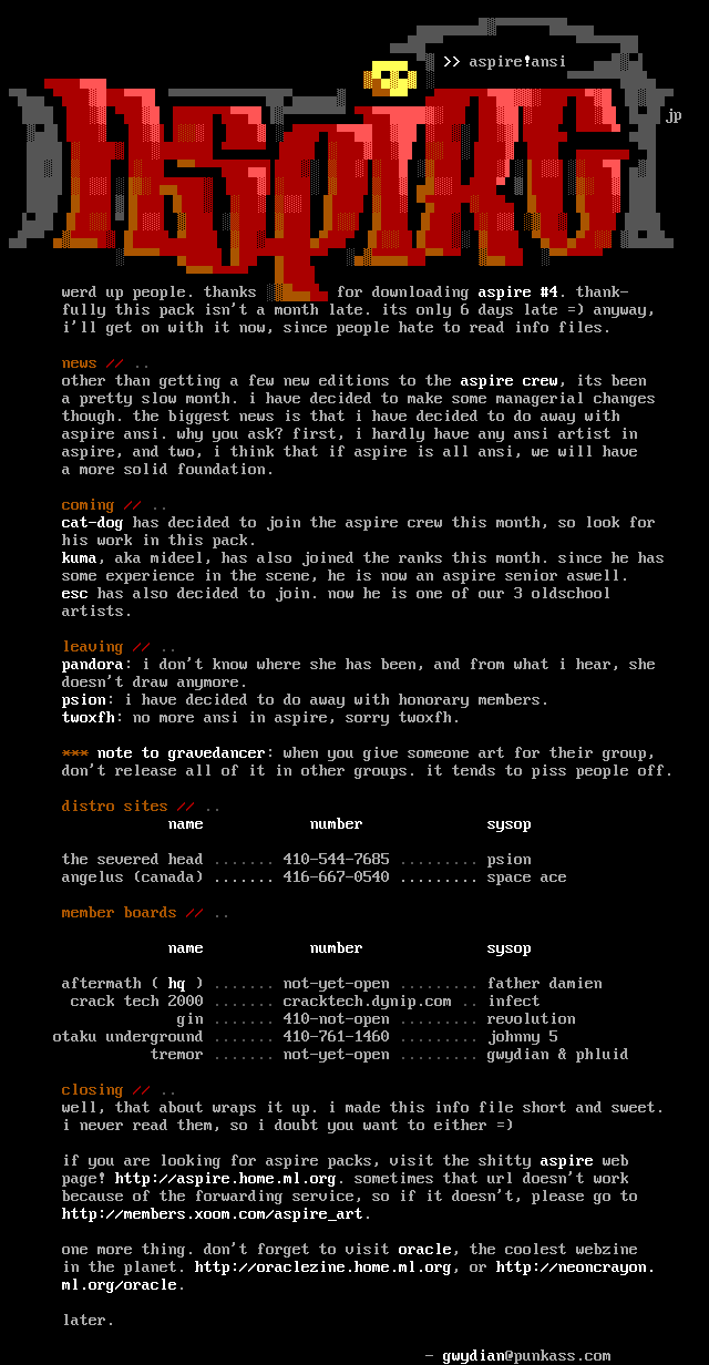 aspire ansi. why you ask? first, i hardly have any ansi artist in