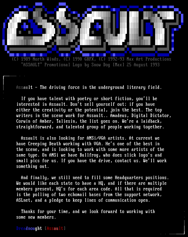 looking for ANSi/VGA artists. At current we