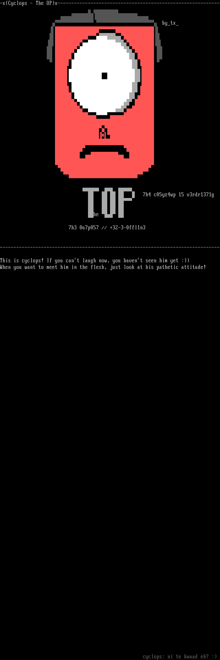 This is cyclops! If you cant laugh now, you havent seen him yet :