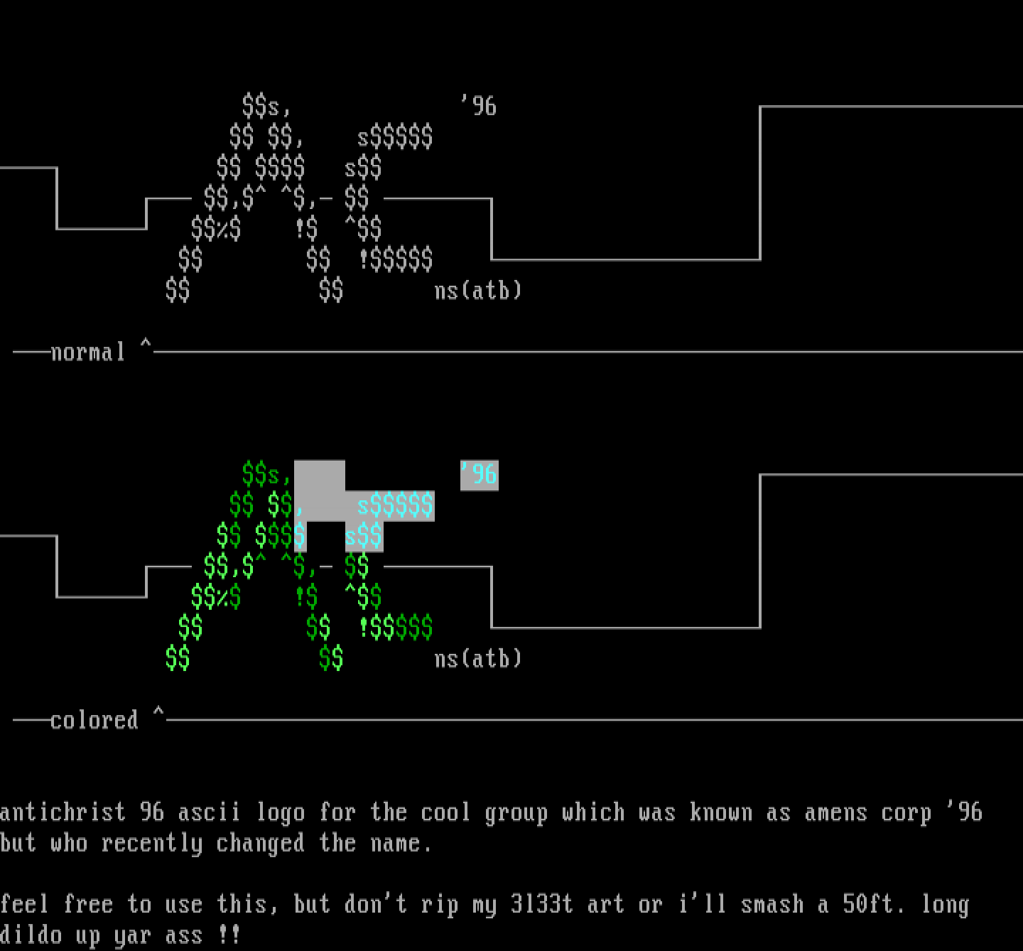 antichrist 96 ascii logo for the cool group which was known as amens corp 96