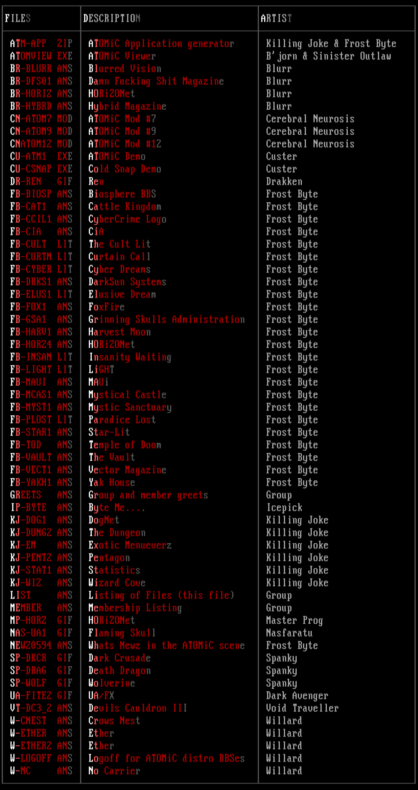 OMiC distro BBSes Willard W