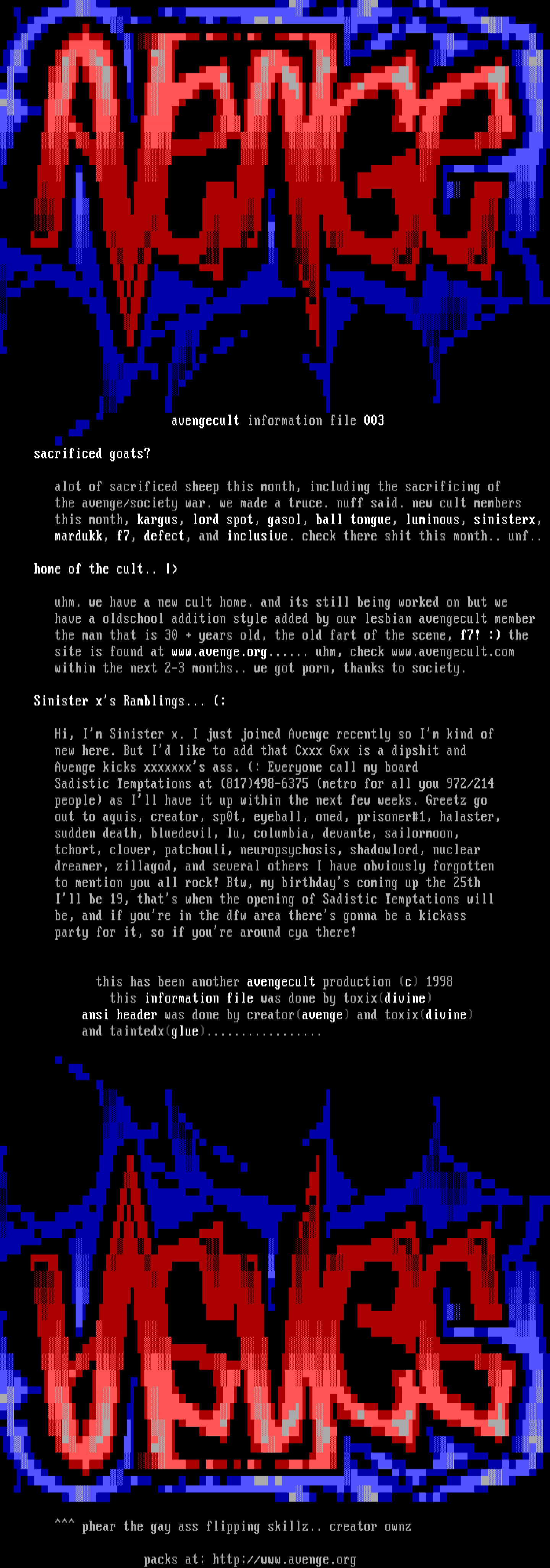 site is found at www.avenge.org...... uhm, check www.avengecult.com