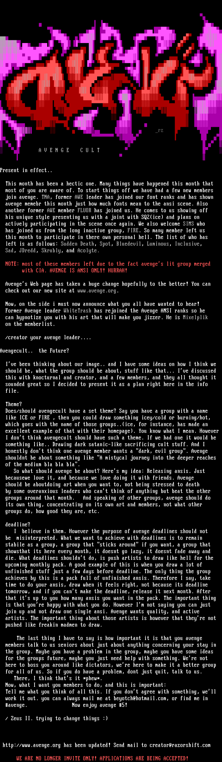 with CIA. AVENGE IS ANSI ONLY! HURRAH!