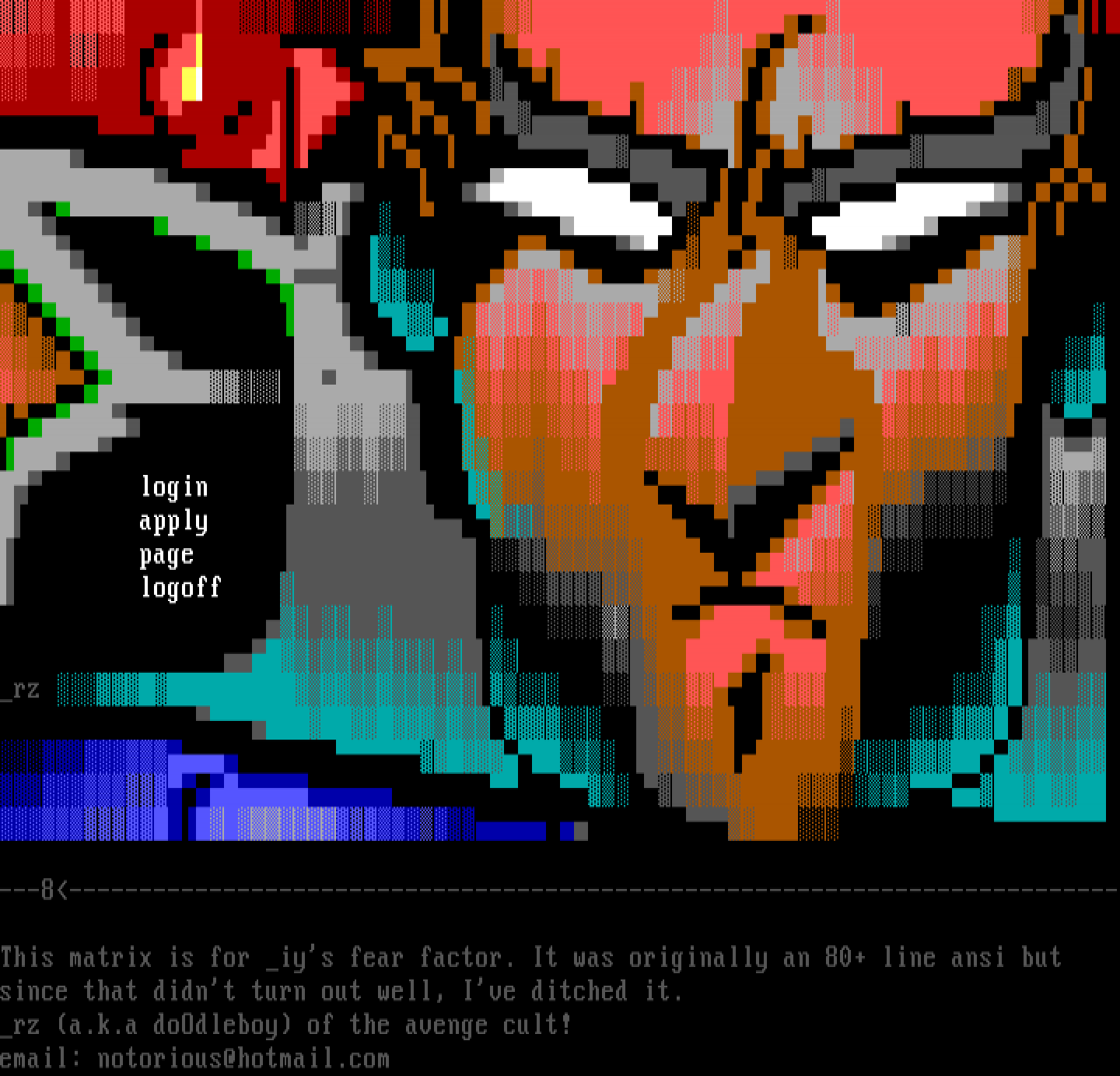 This matrix is for iys fear factor. It was originally an 80+ line ansi but