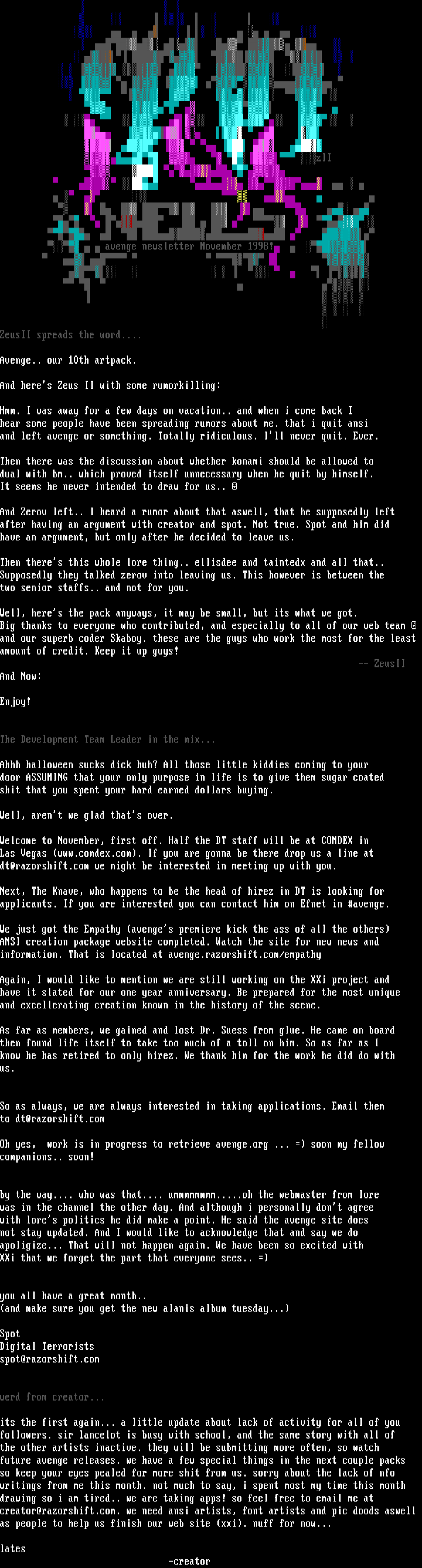creator@razorshift.com. we need ansi artists, font artists and pic doods aswell