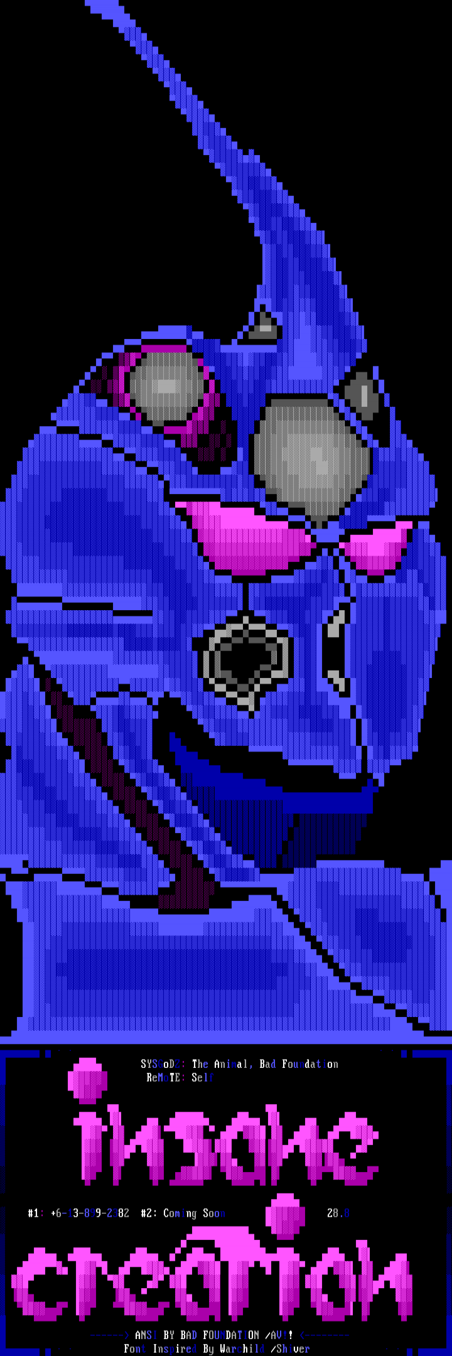 1: +6-13-899-2382 2: Coming Soon 28.8 ------ ANSI BY BAD FOUNDATION /AV!! -------- Font Inspired By Warchild /Shiver