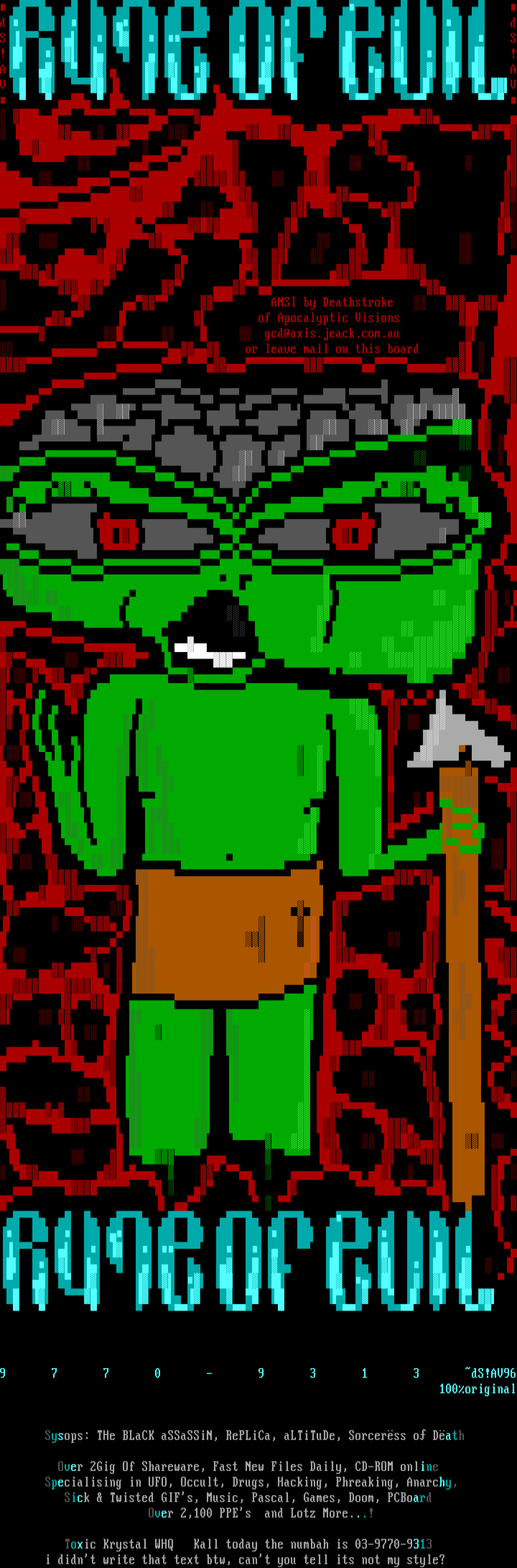 d dS S! !A AV V ANSI by Deathstroke of Apocalyptic Visions gcd@axis.jeack.com.au or leave mail on this board