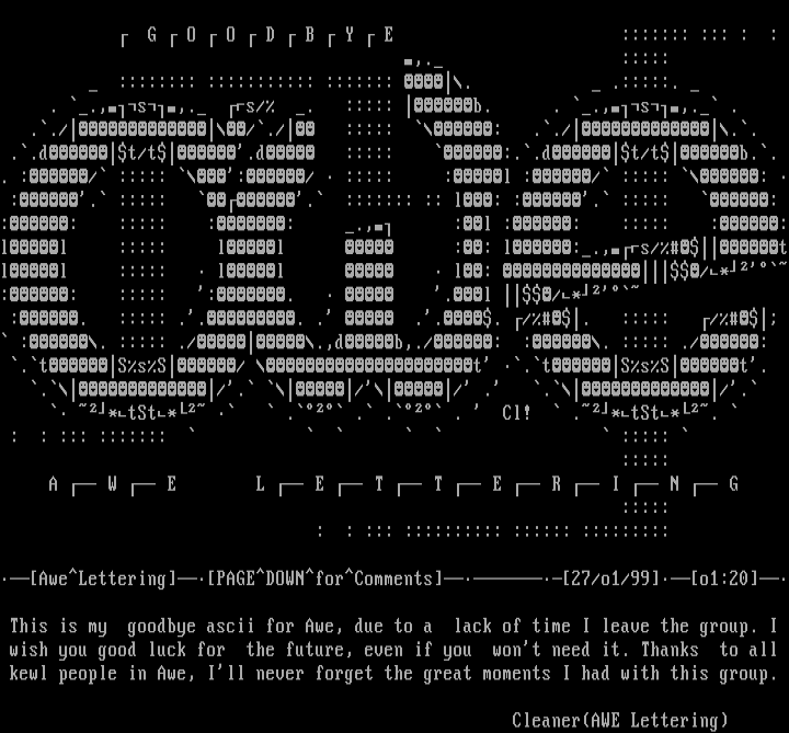 This is my goodbye ascii for Awe, due to a lack of time I leave the group. I