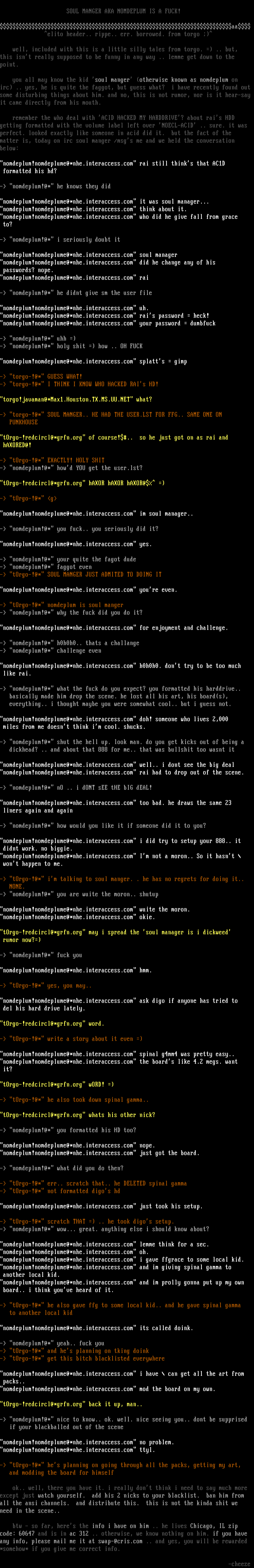 SAUCE00soul manger, the faggot. read up. cheeze none 19961016P