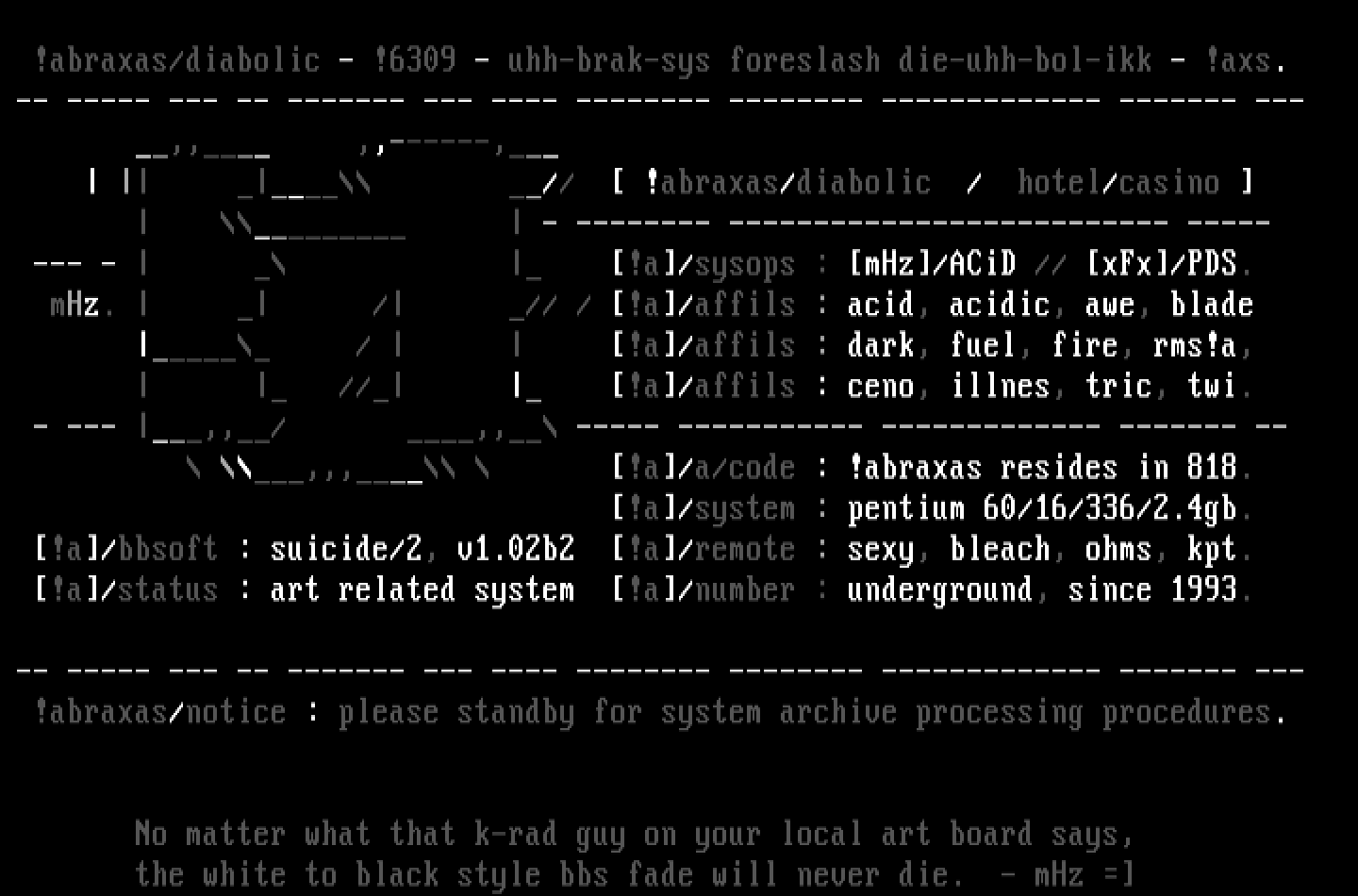--- - !a/sysops : mHz/ACiD // xFx/PDS.