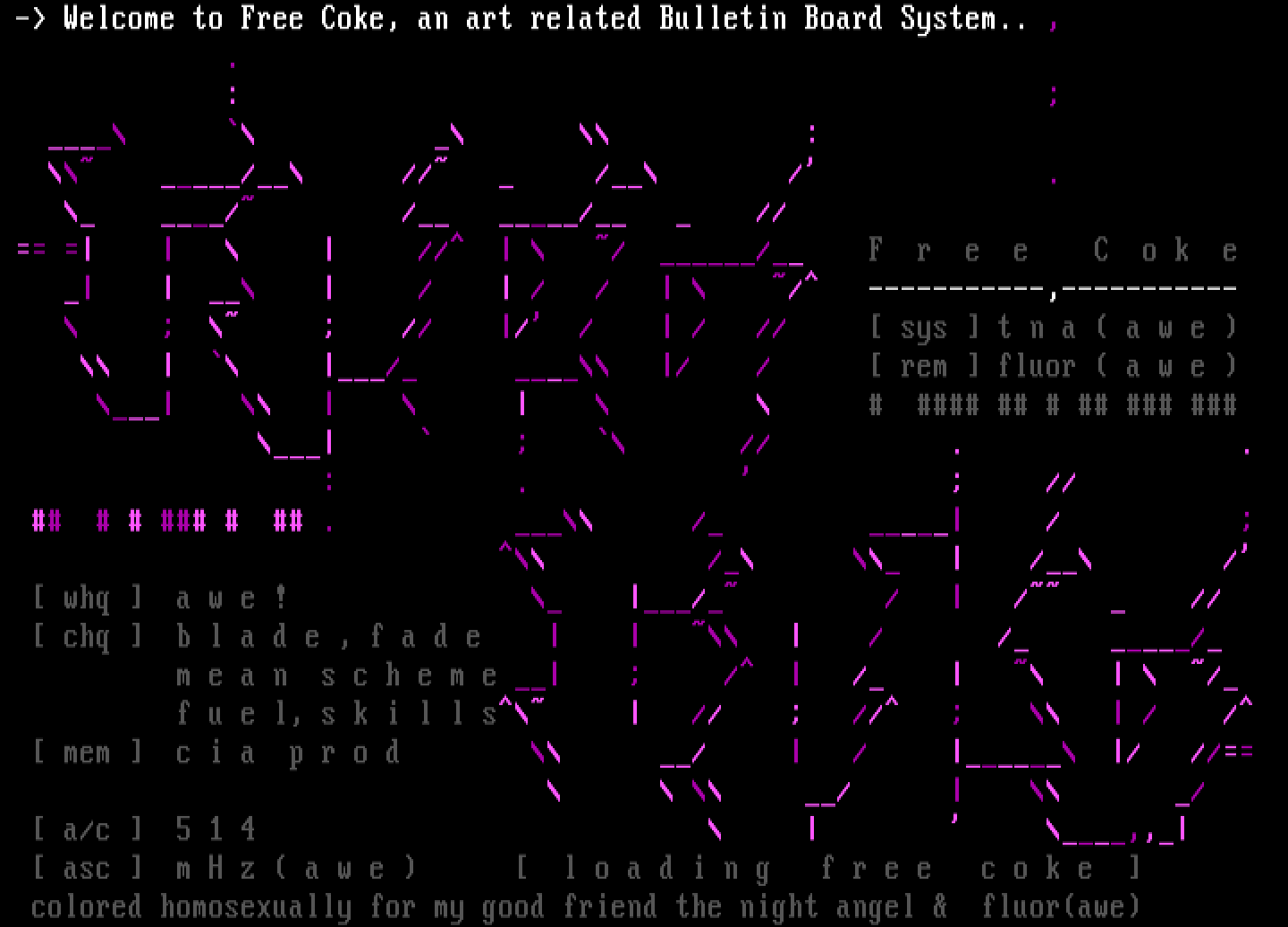 - Welcome to Free Coke, an art related Bulletin Board System.