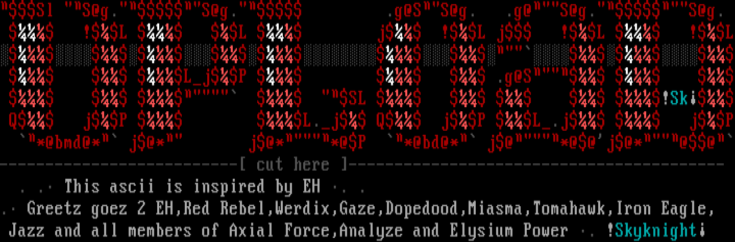 . Greetz goez 2 EH,Red Rebel,Werdix,Gaze,Dopedood,Miasma,Tomahawk,Iron Eagle,