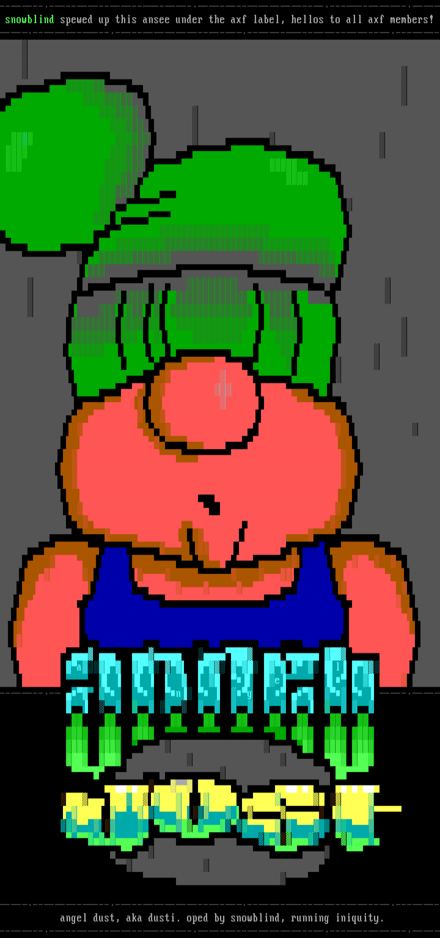 ------------------------------------------------ angel dust, aka dusti. oped by snowblind, running iniquity.