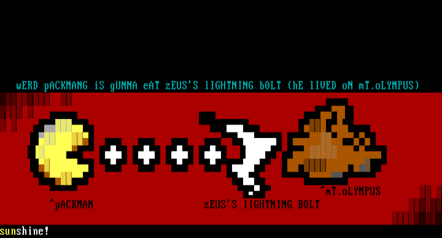 wERD pACKMANG iS gUNNA eAT zEUSS lIGHTNING b0LT hE lIVED oN mT.oLYMPUS
