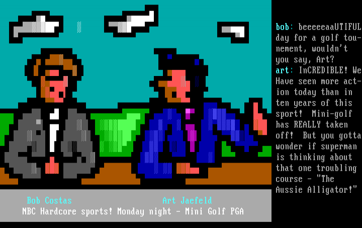 bob: beeeeeaaUTIFUL day for a golf tou- nement, wouldnt