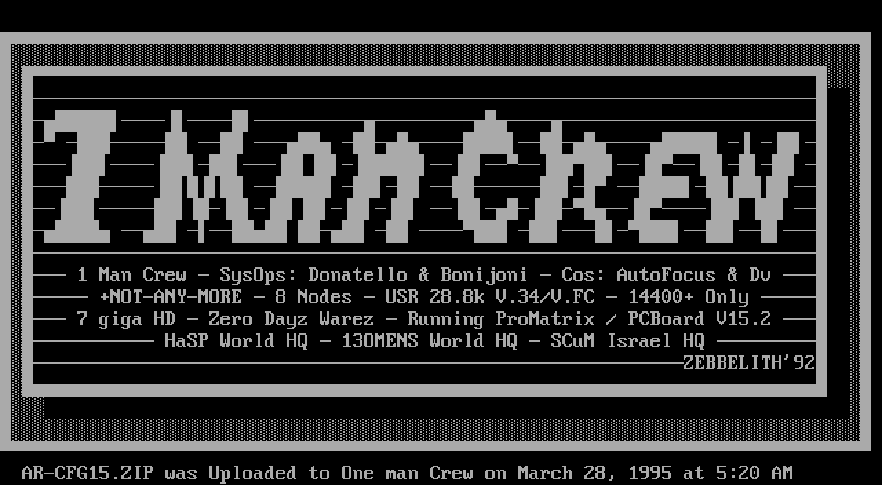 AR-CFG15.ZIP was Uploaded to One man Crew on March 28, 1995 at 5:20 AM