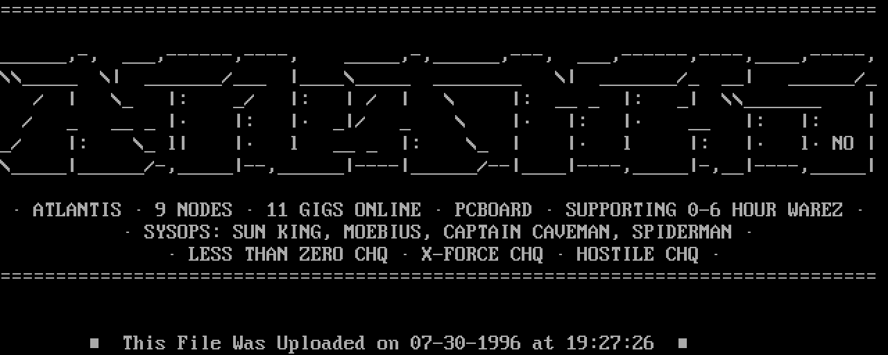 ATLANTIS 9 NODES 11 GIGS ONLINE PCBOARD SUPPORTING 0-6 HOUR WAREZ