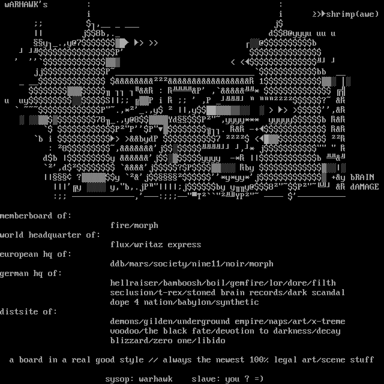 sysop: warhawk slave: you ?