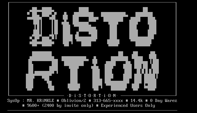 SysOp : MR. KRiNKLE Oblivion/2 313-665-xxxx 14.4k 0 Day Warez