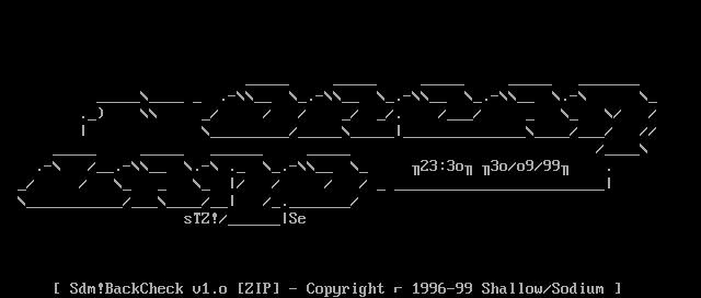 Sdm!BackCheck v1.o ZIP - Copyright 1996-99 Shallow/Sodium