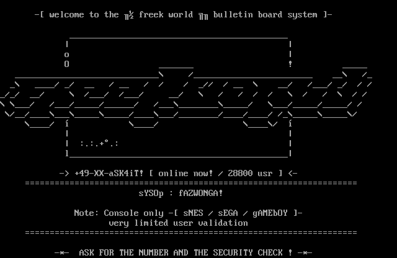 - welcome to the freek world bulletin board system -