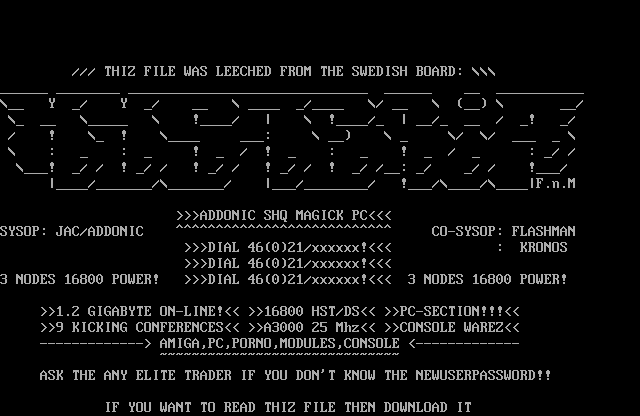 SYSOP: JAC/ADDONIC CO-SYSOP: FLASHMAN