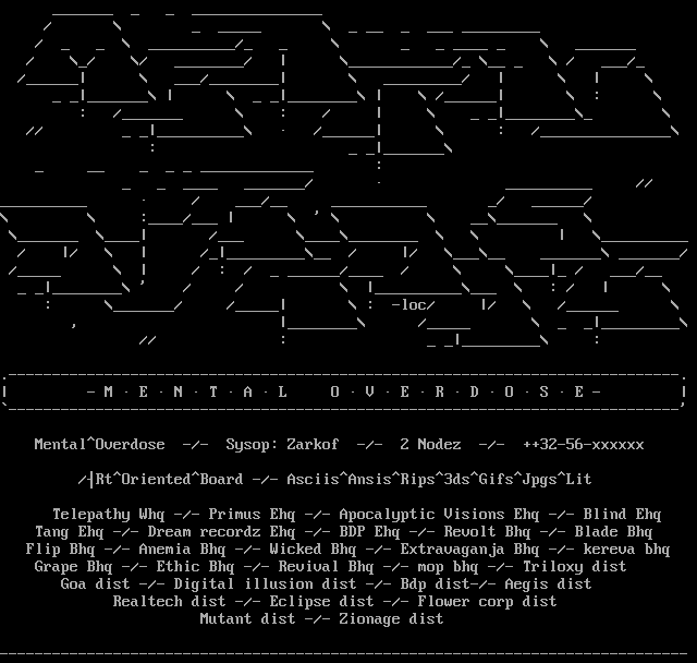MentalOverdose -/- Sysop: Zarkof -/- 2 Nodez -/- ++32-56-xxxxxx