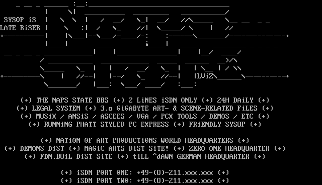 + THE NAPS STATE BBS + 2 LiNES iSDN 0NLY + 24H DAiLY +