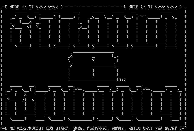 - NO VEGETABLES! BBS STAFF: jAKE, NosTromo, eNNAY, ARTIC CAT! and R@7@P -