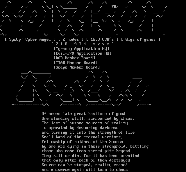 SysOp: Cyber Angel 2 nodes 16.8 USRs Gigs of games